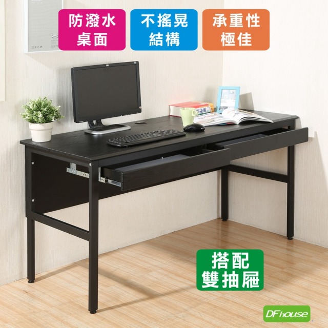 《DFhouse》頂楓150公分電腦辦公桌+2抽屜-黑橡木色