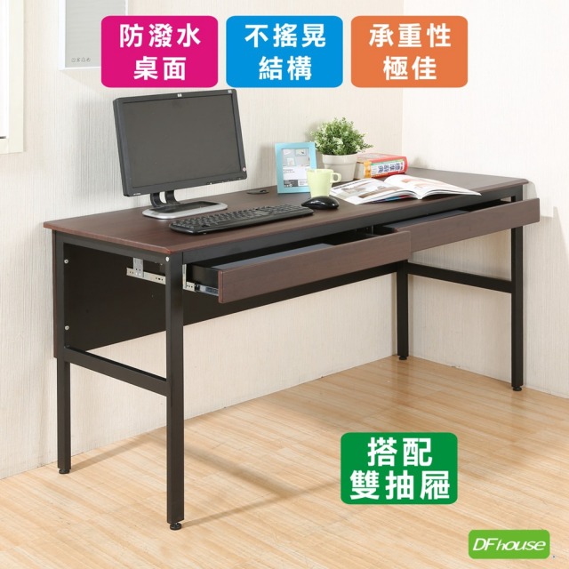 《DFhouse》頂楓150公分電腦辦公桌+2抽屜-胡桃色