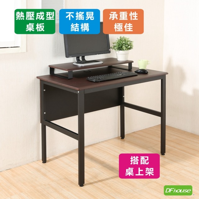 《DFhouse》頂楓90公分電腦辦公桌+桌上架-胡桃色