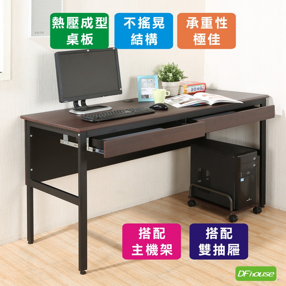 《DFhouse》頂楓150公分電腦辦公桌+2抽屜+主機架-胡桃色