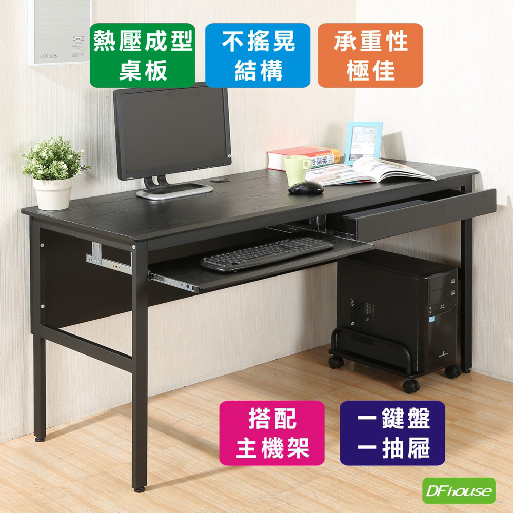 《DFhouse》頂楓150公分電腦辦公桌+1鍵盤+1抽屜+主機架-黑橡木色