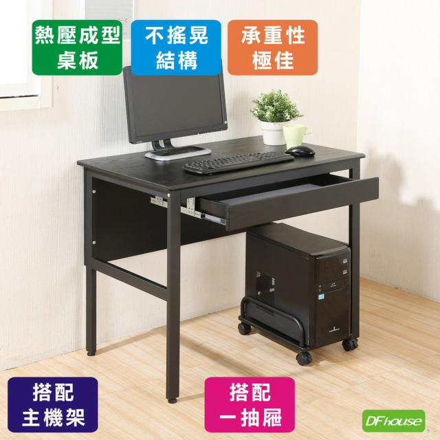 《DFhouse》頂楓90公分電腦辦公桌+1抽屜+主機架-黑橡木色