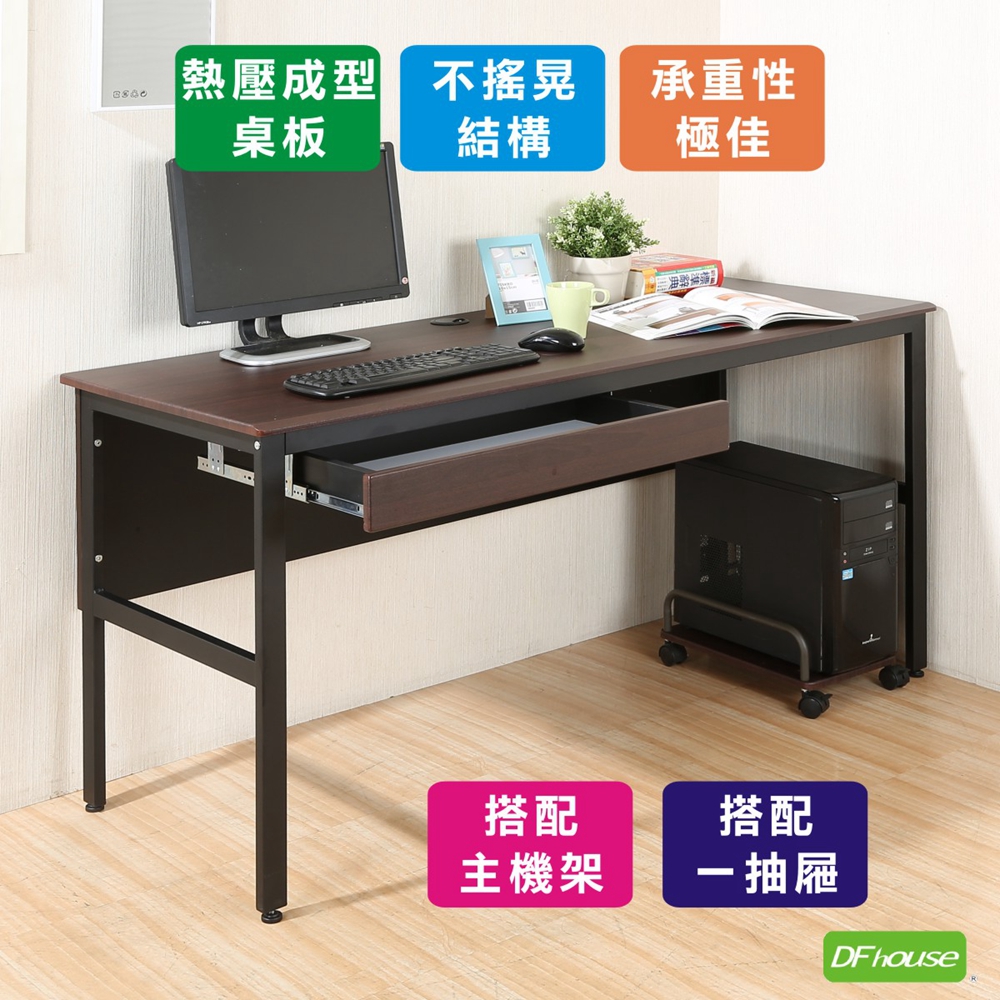 《DFhouse》頂楓150公分電腦辦公桌+1抽屜+主機架-胡桃色