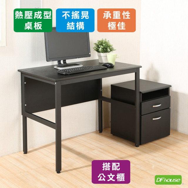 《DFhouse》頂楓90公分電腦辦公桌+活動櫃-黑橡木色