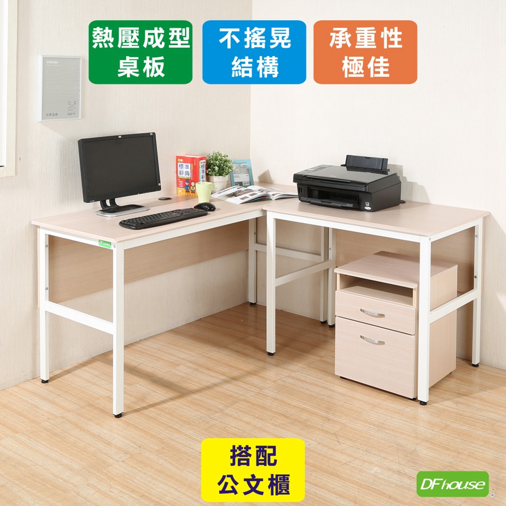 《DFhouse》頂楓150+90公分大L型工作桌+活動櫃-胡桃色