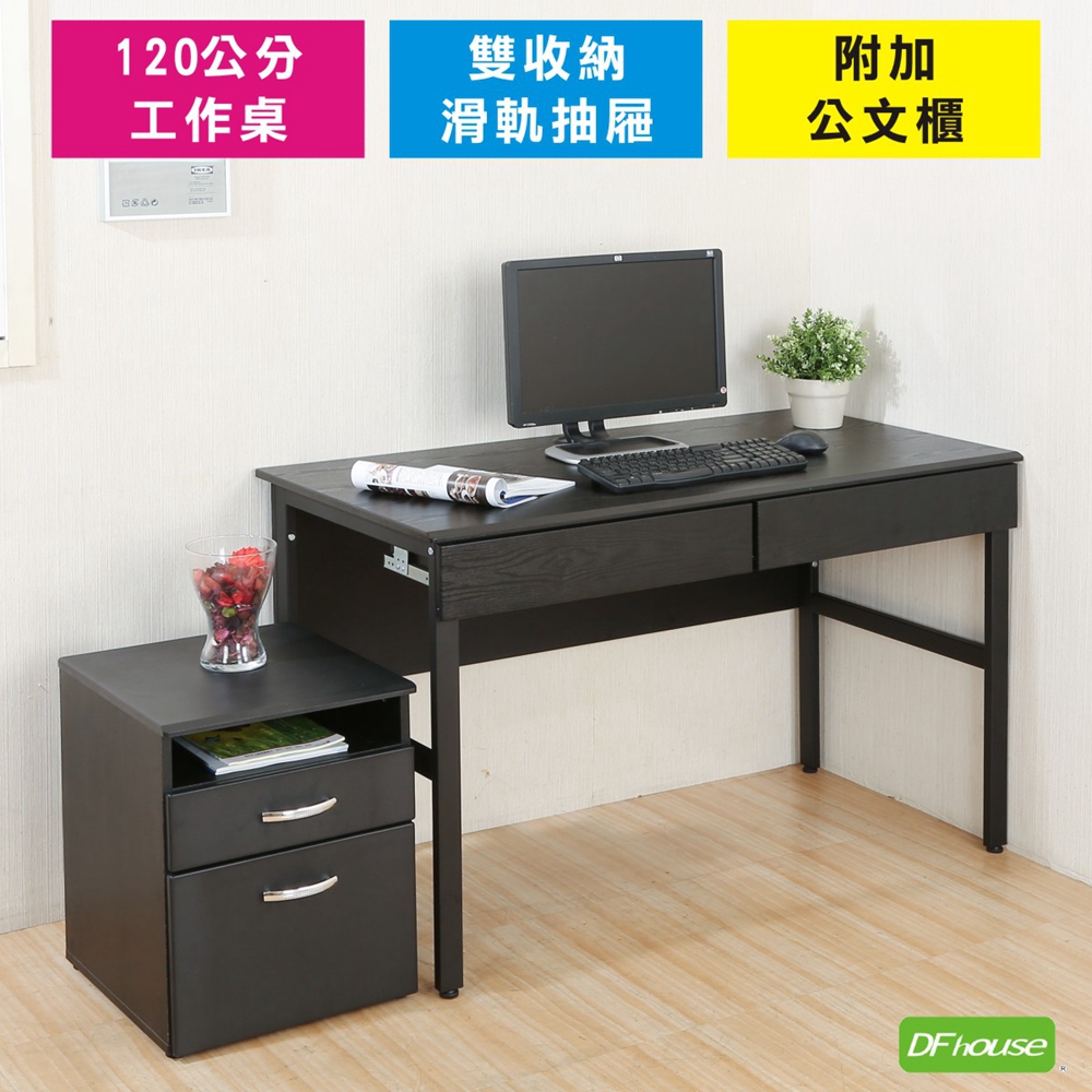 《DFhouse》頂楓120公分電腦辦公桌+2抽屜+活動櫃-胡桃色
