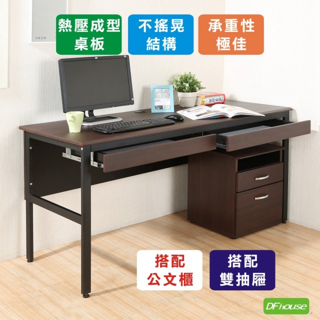 《DFhouse》頂楓150公分電腦辦公桌+2抽屜+活動櫃-胡桃色