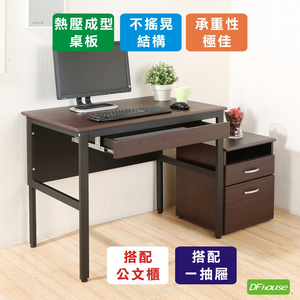 《DFhouse》頂楓90公分電腦辦公桌+1抽屜+活動櫃-胡桃色