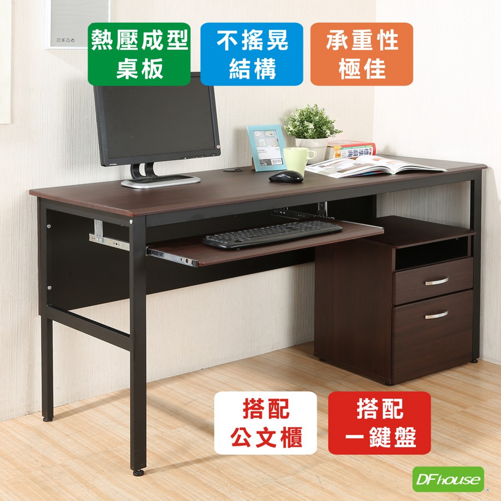 《DFhouse》頂楓150公分電腦辦公桌+1鍵盤+活動櫃-胡桃色