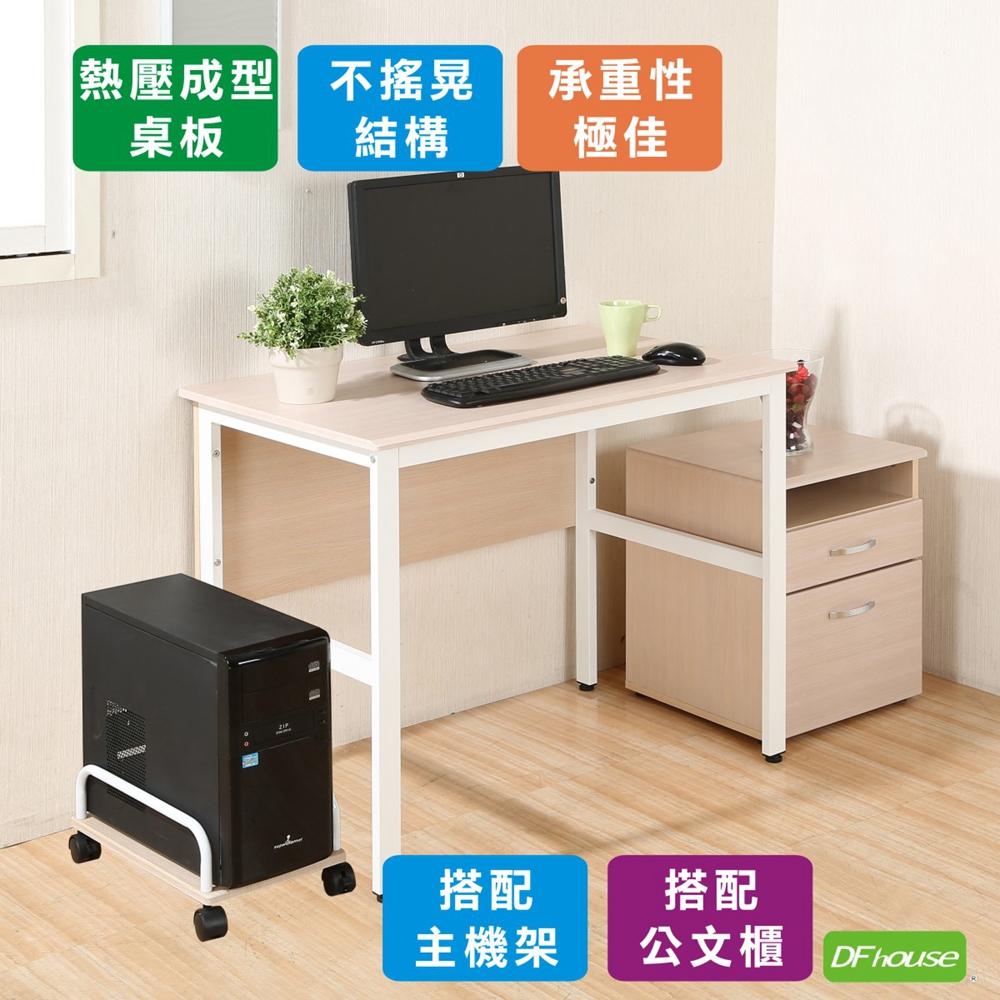 《DFhouse》頂楓90公分電腦辦公桌+主機架+活動櫃-楓木色