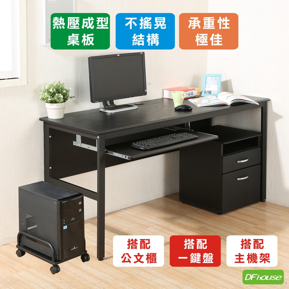 《DFhouse》頂楓150公分電腦辦公桌+一鍵盤+主機架+活動櫃-胡桃色