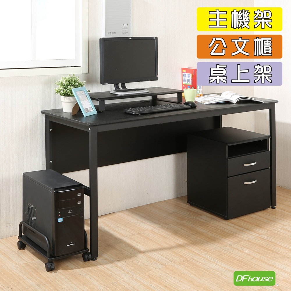 《DFhouse》頂楓150公分電腦辦公桌+主機架+活動櫃+桌上架(大全配)-楓木色